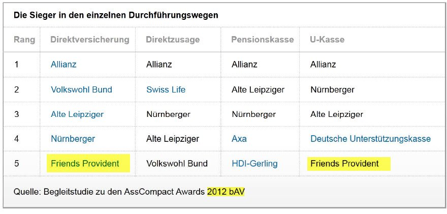 Leider hat die Friends ihr Neugeschäft in Deutschland 2013 eingestellt. Die Verträge wurden von Aviva übernommen und weiter aktiv verwaltet.